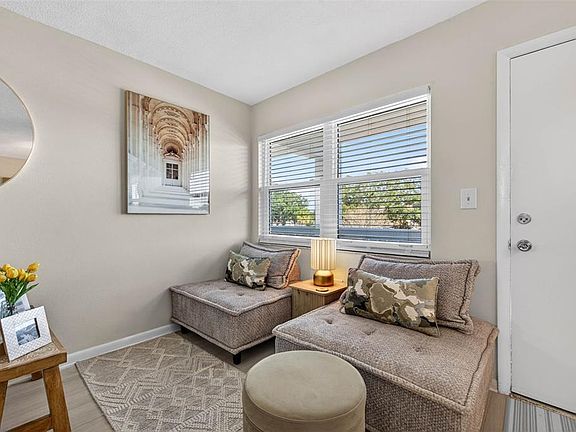 Discover effortless living in this beautiful tastefully designed condo that's being sold fully furnished! This 1-bedroom, 1-bath residence nestled within the sought after Winston Gateway 55+ community feels warm and welcoming from the start. The interior features newer luxury vinyl plank flooring that flows seamlessly throughout. The updated kitchen showcases solid wood cabinetry, stainless steel appliances, a custom tile backsplash, with excellent storage solutions. Natural light through newer windows fills the living and dining areas. The spacious primary bedroom offers a serene retreat with generous closet space and direct access to the additional enclosed fully renovated Florida room that is not included in the square footage - extending your living area and creating a cozy spot for morning coffee, reading, or simply enjoying the peaceful surroundings. An updated bathroom with modern finishes and lighting adds to the home’s fresh, move-in-ready appeal. Multiple closets inside the unit plus additional private storage provided. Convenience continues with a community laundry room located in each building, making daily tasks easy and stress-free. Well-maintained grounds and friendly community atmosphere. Residents enjoy a wealth of amenities, including a heated resort-style pool, beautifully landscaped courtyard, shuffleboard courts, a dedicated meeting and activity room, bike storage, and private assigned parking. Cable and internet are also included, adding even more value. This condo has had no hurricane damage or flooding, offering peace of mind in addition to comfort. You’re just 10 minutes to Downtown St. Petersburg, 15 minutes to Raymond James Stadium, and steps away from a variety of shopping and dining options. Move in and enjoy the lifestyle you’ve been waiting for.