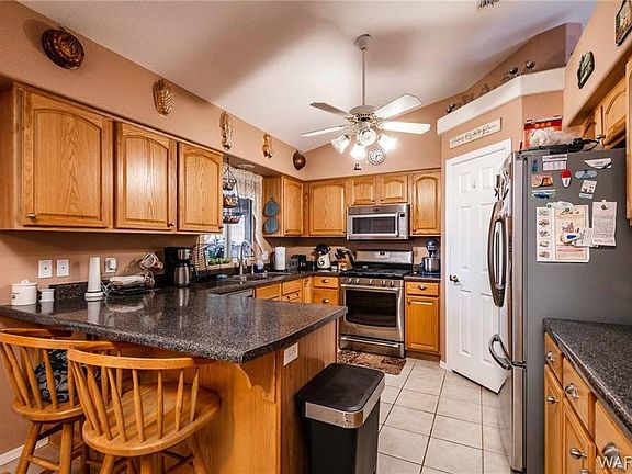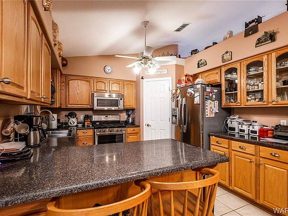 STUNNING HOME WITH LOTS OF UPGRADES!!! This beautiful clean split bedroom designed 3 bedroom / 2 bath house is 1,761 sqft. in size, and is sitting on a (.25) acre of property in Valle Vista Golf Course Community! This home has only had 2 owners, and the original who built it was an engineer! There are so many upgrades all the way from extra upgraded equipment to extra insulation in every wall in the house to keep those utility costs down! The master bedroom is BIG with a HUGE additional office / Den. The master bathroom has his and hers sinks with a walk in shower, and a walk in closet. This house also has Vortex self cleaning toilets! The living room is BIG with vaulted ceilings. The kitchen is STUNNING with very shiny counter tops, and Maytag stainless steal appliances that are only 2 1/2 years old! The front bedroom has a bay window with window seat, and storage section built into it! There are SHUTTERS on all of the windows that flip open or completely open up for optimal natural sunlight! The carpet is only 2 years old! There is also an indoor laundry room with cabinets. The whole inside and outside of the house was painted only 2 years ago with quality paint, and looks fantastic! From the kitchen are the French Doors with blinds inside the glass that lead into a STUNNING Arizona Room with a BAR, SINK, and BARBEQUE inside! As soon as you walk out of the Arizona Room there is a HOT TUB that you can enjoy with FANTASTIC VIEWS of the Mountains, and 2 GAZEBOS for some added shade! To the right side of the house is a LARGE solid wood shed for extra storage, and a wide wrought iron gate for access. The whole back yard is enclosed with a block wall, and fully landscaped with 2 fruit trees in the front yard! This home is equipped with a Energy Star Rated Honeywell 15k generator that is Wi-Fi compatible, and turns on automatically if the power goes out, and it is powered by propane. The generator also runs every 2 weeks automatically for 20 minutes, and will give you a report! The Energy Star Rated A/C and Furnace are Dual Fuel systems, and are only 2 years old! The A/C is a 14 seer unit, and the Furnace is 96% energy efficient! The Energy Star Rated water heater is a Rinnai 9.8 gallon per minute direct vent tankless water heater, and will never run out of hot water! There are Rv hookups on the side of the house. Alarm system is owned. Slab is 6 in & 5000 psi