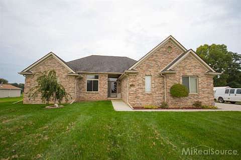 3 Bdrm, 2.5 Bath, Brick Ranch. Den w/French drs, Ceramic foyer, Cathedral ceiling in Grt Rm w/natural fireplace. Ktchn w/Maple cbnts, Pergo flrs, ktchn appliances to stay. Bay off eating area to outside deck. 1st Flr laundry excl washer/dryer. Mstr bdrm w/walkin closet, private bath w/garden tub & separate shower. Open stairwell to unfinished bsmt w/9ft ceiling. 80+ furnace, humidifier, 40gal HWH, whole house Generex generator. Fenced area off deck, shed to stay. Cub Cadet 53" for sale also. Occupancy negotiable. Well/Septic inspection at buyer's responsibility if wanted. 2 acres w/ room to roam.