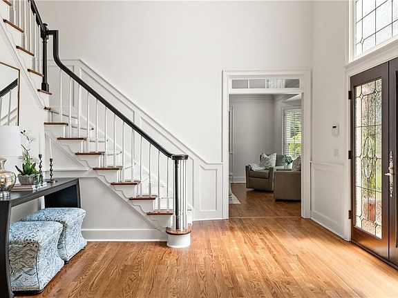 Welcome to this one-of-a-kind home in Sandy Springs. Sitting on a beautifully landscaped .6-acre corner cul-de-sac lot, this 6,396-square-foot residence with three finished levels, combines elegance, comfort, and functionality. Just remodeled from top to bottom with high-end updates, it’s ready for you to move in and enjoy. From the moment you arrive, the circular driveway, manicured lawn, and grand mahogany double doors with custom leaded glass make a lasting first impression. Inside, a soaring 18-foot foyer with a sparkling crystal chandelier sets the stage. You’ll find hardwood floors throughout, solid-core doors with Baldwin Estate hardware, LED lighting, and custom plantation shutters on every level. The kitchen is a chef’s dream, featuring Thermador and Sub-Zero appliances, a five-burner gas cooktop, convection double ovens, porcelain counters and backsplash, and custom cabinetry. The breakfast area overlooks a new 16’ x 44’ deck and a private backyard retreat. Multiple living spaces—both formal and casual—plus a custom bar and two fireplaces make this home perfect for entertaining. The primary suite feels like a private getaway with its sitting area, coffered ceiling, and dual walk-in closets with custom built-ins. The spa-like bath features Italian porcelain tile, quartzite vanities, a large soaking tub with private backyard views, Grohe shower and faucets, and a Toto Washlet system. Upstairs, four spacious bedrooms, three updated full baths, and a cedar closet round out the second level. The finished terrace level adds more than 1,200 “chill” square feet of living space with a media room, bedroom, full bath, second laundry, and a stunning two-tiered bar with Calico glass backsplash and dual-zone wine cooler. It’s also wired and plumbed for a theater or second kitchen—perfect for a guest or in-law suite. Step outside to enjoy the paver patio, custom paver fire-pit, professional lighting, and space for a future pool. Upgrades include Pella windows, whole-home audio, a 25KW generator, spray-foam insulation, three HVAC systems, Polyaspartic garage flooring and much more. Located in a swim/tennis community with a lake, lighted tennis and pickleball courts, and playgrounds—just minutes from Buckhead, Roswell, and top-rated private and public schools—this home truly has it all.