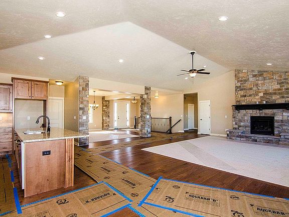 Contract fell. HOME IS NOW COMPLETE! Immediate possession available. This spacious, popular floor plan ranch sits beautifully on over an acre and half. Over 200 acres of open space throughout the community. Nice finishes throughout home including stainless gourmet kitchen, Knotty Alder cabinets, stoned fireplace, stoned columns, large deck and much more. Paved roads, close to town, shopping and schools. Landscaping with sprinklers