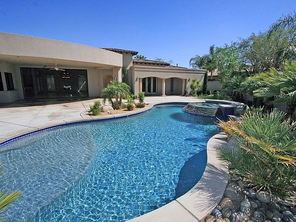 Premier Estate with private location within the prestigious community of Villaggio at Indian Wells Country Club. Built in 2005 by renowned Ministrelli homes, this 5157 SF home on a gorgeous 20,038 SF lot has 3 Bedrooms, Large Den/ Office, spectacular Gourmet Kitchen and 4.5 Baths. Stunning South facing courtyard entry with pebble tech pool, and raised spa, beautiful fountain, lush landscaping, large loggia with fireplace and incredible mountain views.