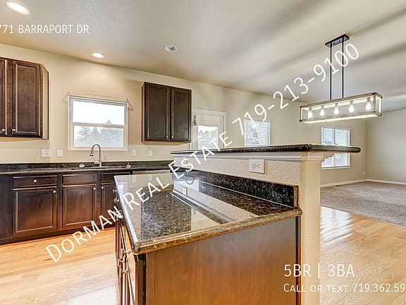 This 3373 square foot single family home has 5 bedrooms and 3.0 bathrooms. This home is located at 7771 Barraport Dr, Colorado Springs, CO 80908.