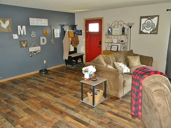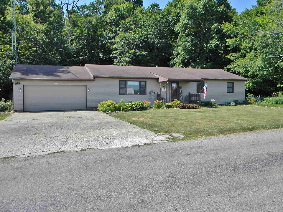 Newly updated and move in ready! Over 1500 square feet, open concept, three bedroom, one bath home with an attached 2 car garage on a one acre partially wooded lot. Eat in kitchen, nice sized living/family room, and all appliances will remain! Updates include flooring, some appliances, water softener, paint, and much more! Great outdoor space with open deck and firepit. Rural location, a few miles west of the Kosciusko County line!