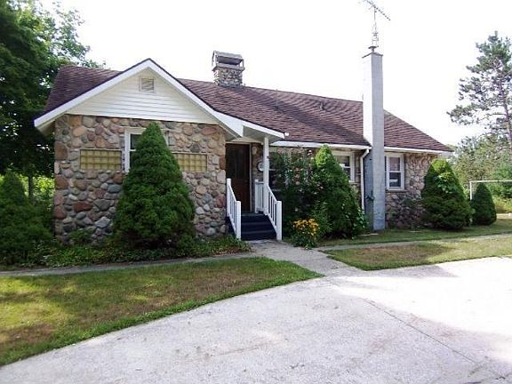 PRICE REDUCED FROM $171,000 TO $159,900! Picture perfect stone home along the Muskegon River with 3 bedrooms and 2 baths. The winding drive takes you through the tall pines to the secluded home. Wood burning fireplace in the living room and a multi layered deck to watch the river from. This home sits high and dry from the river with beautiful views. Includes a detached stone garage and additional 40x70 Pole Building. The partial walk-out basement has a workshop and separate entrance. Just a short drive from Evart and on a blacktop road.
