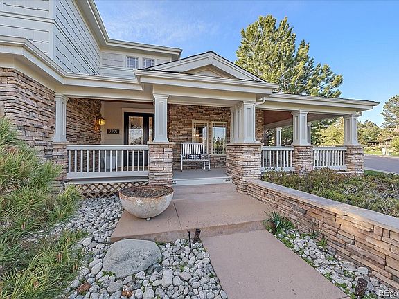 Stunning remodel on this Craftsman’s style custom w/ wrap-around porch. Located in the prestigious neighborhood of The Timbers. A secluded area known for its rolling hills, Ponderosa pines, trails, wildlife, big open spaces, & Douglas County Schools. It sits on a .58 acre corner lot on a former ‘Parade of Homes’ culdesac. Just minutes from The Pinery Country Club; which features 27 championship holes, clubhouse, & swim/tennis facilities just a short golf cart ride away on connecting trail. Also close to the Pradera golf course & The Colorado Golf Club. The home has been remodeled from top to bottom including recent exterior paint & roof. You’ll love the beautiful gourmet kitchen featuring: tall ceilings, Quartz counter tops, custom 42” cabinetry, large center island, Wolf stove, double oven, pot filler faucet, farm sink, Butler pantry, & large pantry. Beautiful stone fireplace & Craftsman’s style wood accents & windows in the great room. Custom Cantina doors open wide to the backyard inviting the outdoors in. There’s a large study w/ built-ins on the main floor and many options for a 2nd study. Gorgeous primary bedroom w/ vaulted ceiling, wood beams, & gas fireplace. Exquisite primary bath includes a soaking tub, custom tile, 2 person shower, & all new fixtures. Massive walk-in closet w/laundry hookup. The natural stained Cherry hardwood flooring runs much of the main floor & extends upstairs into the loft. The professionally finished basement has a family room, full bath, game area, a theater/exercise room, wet bar, wine cellar, storage, & 2 bedrooms that can be used for a variety of other things like music, exercise, or 2nd study. The backyard is built for fun & entertainment w/ a natural landscape backdrop. You’ll enjoy the custom swimming pool w/ stable retractable cover (the pool can be used year round if you choose), a spa, outdoor kitchen, basketball court, & an outdoor stone fireplace. Please note that the property does extend slightly beyond the back fence.