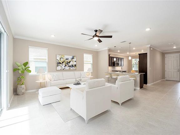 One or more photo(s) has been virtually staged. Aster Model with all the upgrades you will want. 2/2/2 extended garage! Privacy setting with plenty of trees for shade and a lovely back yard to enjoy. When you drive up you will impressed with the custom landscaping, screened garage, and perfect maintenance of the home. Lovely front porch for enjoying coffee or a glass of wine and meeting friends when they walk by. Enter into the foyer and you start to notice the custom upgrades, crown molding, custom paint, blinds, tile and laminate floors, ceiling fans and lighting including pendant lights. Kitchen has granite countertops, upgraded cabinets, SS appliances, tiled backsplash, gooseneck faucet, and an eat in area. Laundry closet has builtin cabinets for all your cleaning supplies. Both baths are done very well with quartz countertops, tiled shower in master is oversized, and both baths have plenty of room for two adults. The one thing you will notice on this home is that it is absolutely perfect. Not a mark on the walls, clean as a pin, and ready for you to move in a make it home!!!!