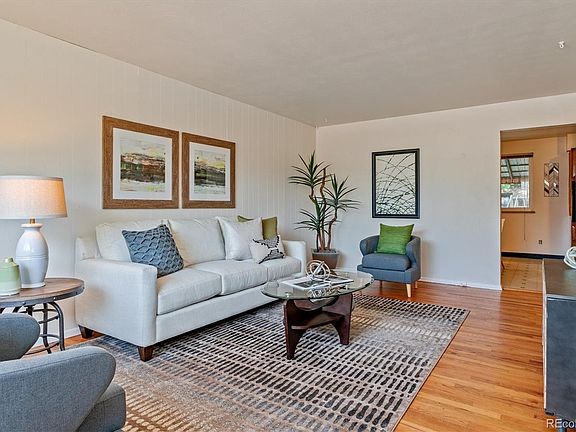 Charming and welcoming ranch in Lakewood's Highland Hills. This light and bright home greets you with all new interior paint on main floor and beautiful hardwood floors which seamlessly connect the main living spaces. Three spacious bedrooms are located on the main floor along with a fully-remodeled bathroom with all new tile, flooring, vanity, hardware, lighting and tub. Walk down the refinished stairs to the finished basement boasting a huge den with new recessed lighting, a 4th private bedroom and another remodeled bathroom. Enjoy relaxing on the covered patio overlooking your private backyard with a large shade tree and mature landscaping. New windows, new roof, all new electrical throughout house and new electrical panel. Ideally located within minutes of great parks, Jefferson county schools, Belmar Shopping Center, dining, shopping and easy access to Denver, Golden and major roadways. Book your showing today!