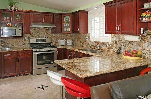 Charming Highly Upgraded Single Story Home Situated on a Large Corner Lot with RV Gate and Parking. This Lovely Home Boasts: Dual Pane Windows & Sliders Throughout, Plantation Shutters, Recessed Lighting in Living Room, Dining Area, & Kitchen, Marble Flooring in Main Living Areas & Wood Laminate Flooring in Bedrooms, Raised Panel Interior Doors, Vaulted Smooth Ceilings, and Custom Double Entry Doors. The Kitchen has been Completely Remodeled with Granite Countertops & Full Backsplash, Custom Cherry Cabinetry, Stainless Steel Gas Stove & Hood, Double Stainless Sink, Breakfast Bar, and a Skylight. Both Bathrooms are Remodeled. Main Bathroom Features Newer Vanity with Granite Countertops, Tile Flooring, & Oversized Shower with Marble Walls, Shampoo Niches, Tile Inlay, and Seamless Glass Enclosure. Inside Laundry Room. Huge Low Maintenance Backyard with Fruit Trees and Lots of Room for Entertaining and Family Activities. New Exterior Stucco and Flagstone Walkway and Flagstone Raised Planters in Front Plus Large Front Lawn. 2 Car Garage with Recessed Lighting and Newer Roll-Up Garage Door. Inside Tract Location in Nice Friendly Neighborhood Close to Shopping, Restaurants, Parks, and Schools. Short Drive to Beach & Freeway Access.