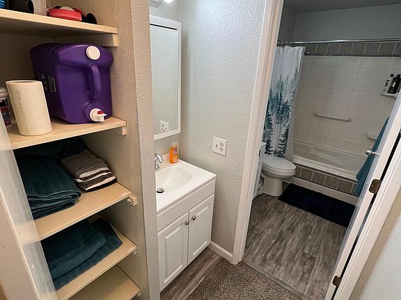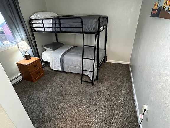 This is a clean and furnished 2 BR 1 BA Top floor unit with great views. This unit includes updated flooring, kitchen, carpet. Bedroom 1 includes a full-size bed & truffle twin size bed with a dresser. Bedroom 2 has 2 twin size bunk beds, in unit washer and dryer. Condo has carport. We are less than 1/2 a mile from JBER located close to Centennial Park. Grocery stores is all a 5-minute driveway. All utilities except electric . Pets allowed. Security Deposit and first month rent due at signing. 6 month summer lease $2,400 one year lease $2,000 Must meet ALL minimum requirements: - No prior evictions - Must have good references of previous utilites included internet, water and electricity.