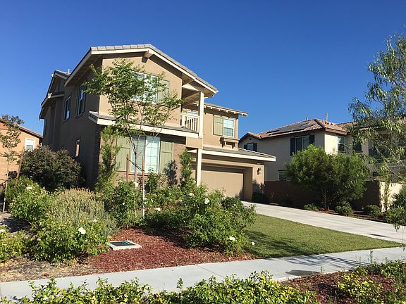 Come and see this beautiful home built in 2014 by Lennar Homes, the Victoria Pointe (Plan 2) Community. It has 4 bedrooms, 3 bathrooms, and approximately 2,676 square feet of living space. Keyless entry. The entryway leads to an open floor plan with a great room and cozy fireplace. Downstairs bedroom has a walk-in closet and adjacent full bathroom. Hallway linen cabinets and a walk-in coat closet with storage. Large, open kitchen with dining area, kitchen island with pendant lights over breakfast bar, seating area, granite countertops, and buffet. Stainless steel appliances with double oven, microwave, and 5-burner cooktop. Perfect for entertaining! Sliding door opens to a nice backyard. As you go up the stairs, you will find a large loft with a balcony (great for a study or game room). Hallway bathroom and 2 spacious bedrooms. Large laundry room with built-in cabinets and adjacent room for extra storage. The master suite has a large walk-in closet and an ensuite bathroom with Roman tub, separate shower, and a double sink vanity. This home has a lot to offer; builder included solar system, low tax rate, and no HOA! Adjacent to Perdew Elementary School (an award-winning Etiwanda district school), close to the desirable Victoria Gardens Shopping Mall and Cultural Center, Bass Pro Shop, and Victoria Arbors community park. Accessible to 15 and 210 Freeways, shopping, and much more! Hurry, this home will not last!