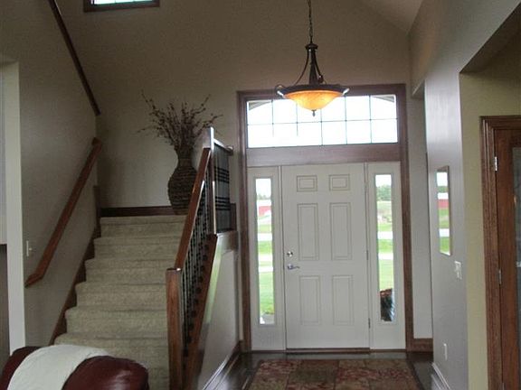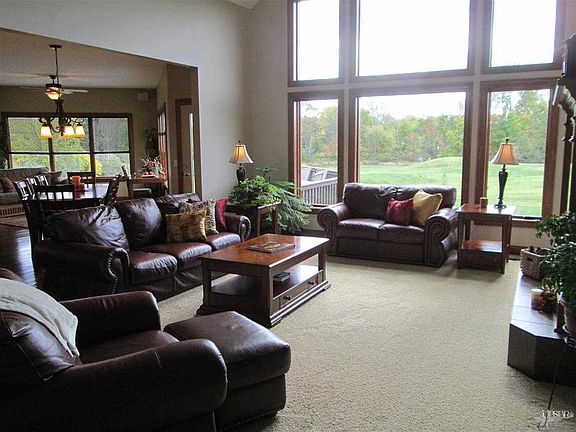 Stunning custom built Bob Buescher Signature Series home! The open floor plan boast a spacious great room, dining room, and large kitchen with granite countertops, beautiful cherry cabinets, large island, and stainless steel appliances. Off the dining room you can walk out onto a large maintenance free Trex deck that overlooks the pond. Master suite is located on the main floor and has a double vanity, large walk-in shower, garden tub, and walk-in closet. Upper level has 3 nice sized bedrooms and a walk in attic space above the garage for ample storage space! The walk-out basement has a bar, bedroom, full bath, and a large open space for entertaining. Other upgraded features are: Geothermal heating and cooling, wood flooring, den, oversized laundry room, and upgraded trim. This home has it all! Schedule your private tour today!