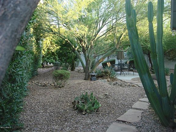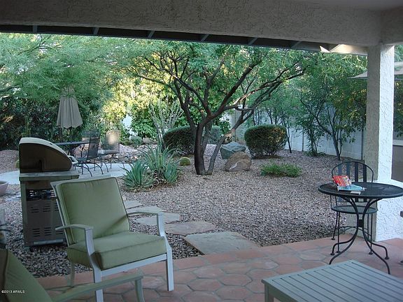 Don't miss out on this beautiful home in Scottsdale! Great location and no HOA! Home was upgraded in 2006, granite counters, upgraded semi-custom cabinetry, lighting under cabinets, stainless steel appliances and refrigerator is included. Huge lot, gorgeous backyard with mature landscaping, low maintenance front and back. Plantation shutters (living room also has shutters that are not currently installed). AC compressor replaced in 2011. This home is in fantastic condition and shows great! Soft water system, cabinets and the biggest RO system you will see in a home are in garage and stay with home. Large master bedroom with sitting room and walk in closet. This home will not last long.