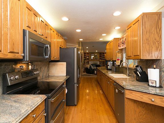 PRIDE OF OWNERSHIP*BEAUTIFULLY REMODELED RANCH STYLE HOME WITH WALK OUT BASEMENT*HARDWOOD FLOORS*UPDATED KITCHEN WITH AN ABUNDANCE OF OAK CABINETS, GRANITE SLAB COUNTERTOP, BACKSPLASH AND UNDERMOUNT SINK, NEW BLACK STAINLESS APPLIANCES, PANTRY, EATING SPACE AND BREAKFAST BAR*LARGE VAULTED GREAT ROOM WITH BUILT IN BOOK SHELVES, ENTERTAINMENT CENTER AND GAS FIREPLACE*FINISHED WALKOUT BASEMENT FEATURES FAMILY ROOM/REC ROOM WITH WOOD FIREPLACE INSERT, WET BAR, 2 BEDROOM, ¾ BATH AND OFFICE*LARGE FENCED BACKYARD FEATURES INGROUND POOL AND HOT TUB WITH METAL SECURITY FENCE, SPRINKLER SYSTEM, WATER FEATURE, SHED AND PLAYHOUSE*VINYL WINDOWS*NEW FURNACE AND A/C*NEW WATER HEATER*LARGE DECK WITH ELECTRIC AWNING*3 CAR GARAGE WITH NEW INSULATED GARAGE DOORS AND OPENER*NEW ROOF*