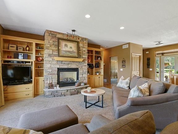Follow MLS directions, GPS is not accurate and there is road construction in the area.Gorgeous walkout rambler made for entertaining. Spacious kitchen W/granite counters, Jenn-air appliances, HW floors, Hickory cabinets, LR w/built ins & stone surround gas fireplace, ensuite with pan vault, whirlpool & separate shower, lower level complete w/beautiful wet bar, gas fireplace w/brick surround, walkout to your exposed aggregate patio, firepit & 26x14 storage building.