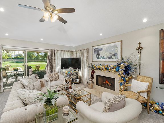 Experience Desert Living at Its Finest!Welcome to a stunning condo in the heart of Woodhaven Country Club, offering the ultimate blend of comfort, style, and convenience--all in the vibrant Palm Desert area. This end-unit gem is perfectly positioned with a coveted south-facing exposure overlooking the pristine golf course, providing breathtaking views and year-round sunshine.Highlights of this Home:Exceptional Community Amenities: Enjoy world-class tennis and pickleball courts, multiple pools and spas, a modern fitness center, and fine dining options--all within the community.The Oakmont Model: This thoughtfully designed 2-bedroom, 2-bathroom floor plan has been beautifully remodeled, featuring a contemporary kitchen with updated stainless steel appliances, rich cabinets, and a stylish bar seating area that flows into the dining and living spaces.Perfect for Entertaining: A spacious great room with vaulted ceilings, ceiling fans, and a cozy fireplace creates a welcoming atmosphere for gatherings. Slide open the newer windows and doors to access a serene patio--ideal for relaxation or hosting under the desert sky.Modern Touches: Upgraded bathrooms, energy-efficient windows, and sliding doors ensure comfort and sophistication throughout.Whether you're seeking a peaceful retreat or a home for entertaining, this condo offers it all. Come and embrace the desert lifestyle in this inviting end-unit home, located in the highly sought-after Woodhaven Country Club.