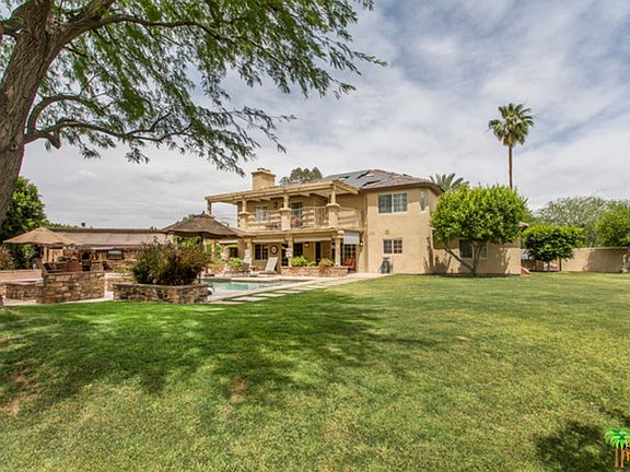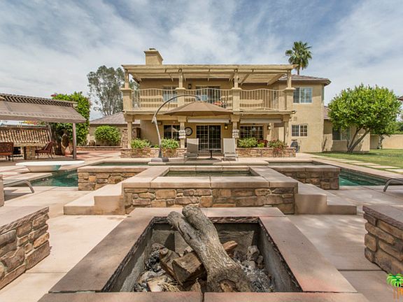 Desirable South facing pool yard! Exempt from the new Short Term Rental Restrictions! STR OK! Has a grand outdoor entertaining space with a gorgeous outdoor pizza oven, built-in barbecue, wine fridge and outdoor TV. The sparkling pool and spa have beautiful waterfall features. Wonderfully landscaped yard includes an open spacious grassy area that's perfect for entertaining. Fruit trees in abundance including peach, lemon, date, almond, pear, apple, orange, grapefruit, and lime. A separate fully gated RV area includes it's own private gated entrance and RV full hookups are located on the property. An impressive entryway and a large custom entertainer's dream kitchen that opens to an inviting family room with elegant fireplace and wet bar. Has a huge bedroom sized laundry room. Large 3 car garage with two separate garage doors. The property has rooftop Solar panels. Sale includes the pool table. No HOA. Shown by appointment.