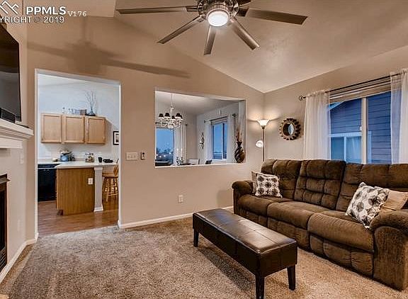 Fantastic new listing in Fountain, CO! Beautiful mountain range views from Pikes Peak and south, to watch our incredible Colorado sunsets. Home also backs to open space that makes it wonderful for walking through the neighborhood and down to the open space which has plenty of room for throwing balls and Frisbees for the pups! There are many fresh done items (past 6 weeks) in the home including, new paint throughout interior, new flooring in bathrooms and in laundry area, freshly laid mulch in backyard, and more! As far as new things to come, an insurance claim as been made and approved for new roof, gutters, painting of entire exterior including shutters and a new garage door. Seller has contractors at the ready, but is waiting to begin work for new buyer to be able to pick colors they would like. So, start putting the color palettes you have dreamed of together! As we enter the home, you'll find a wonderful 1 level ranch layout. Kitchen features dining area with a walkout, breakfast bar, plenty of cabinets and counter space and stainless-steel fridge, microwave and gas range!