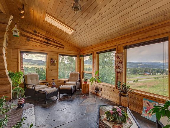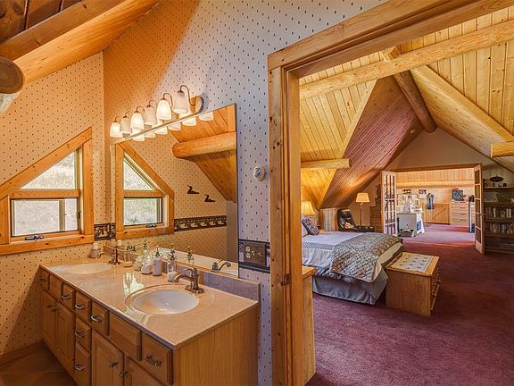 Over 4700 sq ft of hand-hewn log craftsmanship in the heart of Bridger Canyon! Great mountain views from two decks with massive windows beckoning the outdoors in. Mature trees abound & Day Creek crosses the southern portion of the property. Minutes from downtown Bozeman, just a skip to Bridger Bowl. Extensive landscaping including Montana moss rock foundation, retaining walls & accents, underground sprinklers, mature flowers & bushes. In-floor radiant heat on all levels plus 2 massive rock fireplaces. Extra room adjacent to Master has 2 lg closets. One of the bedrooms on the main level does not have a closet. Treat yourself to a sauna at the end of the day & enjoy the starry evenings beside the warmth of your outdoor rock fire pit. 20 acres provide year-round water for stock, a 24 x 24 storage barn, PLUS deeded access on a private road leading to additional acreage for numerous year-round recreation possibilities! South-facing sun room plumbed for hot tub. Yep. You've found your spot.