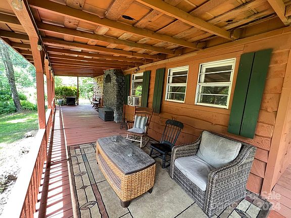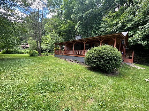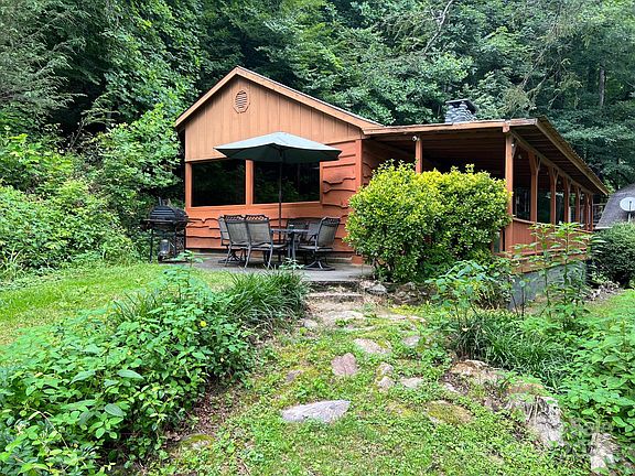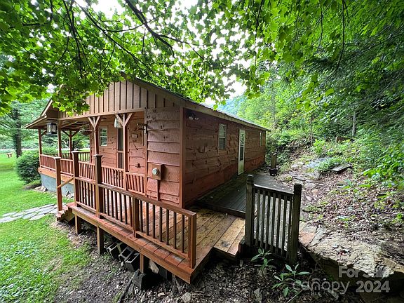 fishing in NC. The main house has two BR and one BA with an open floor plan with a large river rock fireplace and LARGE windows on the side of the home overlooking a creek with a small waterfall directly behind the house. There is a path behind the home that ascends up the hill following the creek (be careful it is slick). The detached garage