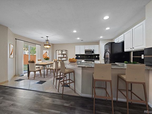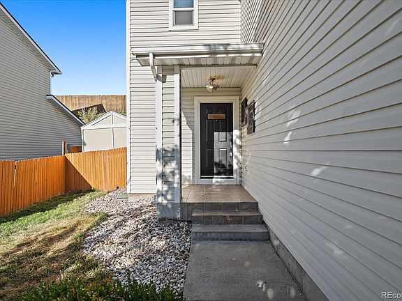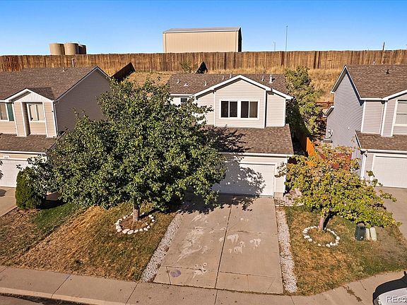 Welcome to this beautifully remodeled home in Brittany Ridge, perfectly positioned on a private lot with no rear neighbors. Step inside to an inviting, open-concept living, dining, and kitchen area. The spacious living room is ideal for hosting large gatherings, filled with natural light from two large windows and a sliding door leading to an extended patio. The adjacent dining nook provides seamless access for indoor-outdoor entertaining. The kitchen features a stunning curved island with seating for up to six, complemented by a dedicated pantry and extended cabinetry for ample storage. A convenient laundry room and half bathroom complete the main level. Upstairs, the primary bedroom suite offers a generous walk-in closet, accompanied by two additional well-sized bedrooms and a full bathroom. The expansive, private backyard boasts extended patios, terraced garden beds, and a storage shed, perfect for outdoor activities. Conveniently located near the light rail station, I-25, 270, and other major highways, with a quick 30-minute commute to DIA. Recent updates include fresh interior paint, laminate flooring, carpet, and modern bathroom vanities. This immaculate, move-in-ready home awaits! New roof to be installed prior to close LENDER PAID INTEREST RATE BUYDOWN AVAILABLE ON THIS LISTING. ASK YOUR REALTOR TO LOCATE THE FLIER IN SUPPLEMENTS.