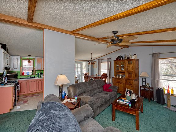 A cozy 2 bedroom 2 bathroom manufactured home located on a nicely sized corner lot. Front exterior space offers a covered deck with beautiful trees that give this home a charming curb appeal. Interior features an open layout with wood beam ceiling detail. Good sized master bedroom. The kitchen is open concept with view to the living and dining areas. Great room area offers nice natural lighting. Schedule a showing to view this home!
