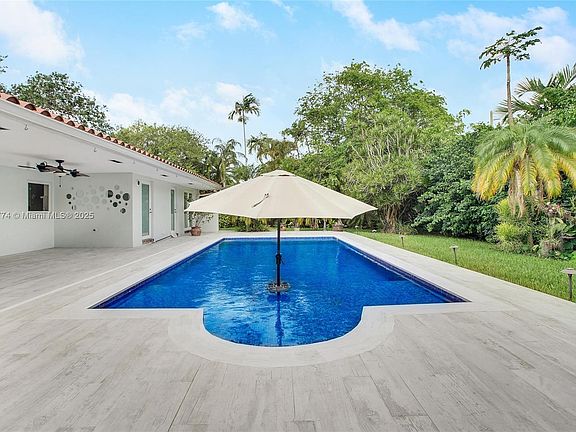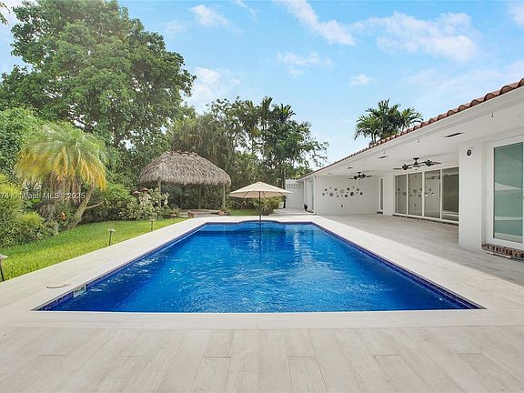Stylish Palmetto Bay Oasis Fully remodeled gem featuring a sleek tile pool, set in one of Miami's most sought-after school zones. Just a short stroll to Coral Reef Park and A-rated Coral Reef Elementary, this bright, open-concept home boasts a chef's kitchen with cooktop island, premium appliances, and plenty of space for entertaining. Relax or watch the game in the screen under the covered patio or tiki hut, enjoy the beach-entry pool. All three full baths offer convenient pool access. Additional highlights include impact windows and doors, Tesla charger, alarm system, and abundant natural light throughout. Nestled on a quiet street, this home offers peace and privacy while keeping you minutes from parks, schools, shopping, and all that Palmetto Bay has to offer.