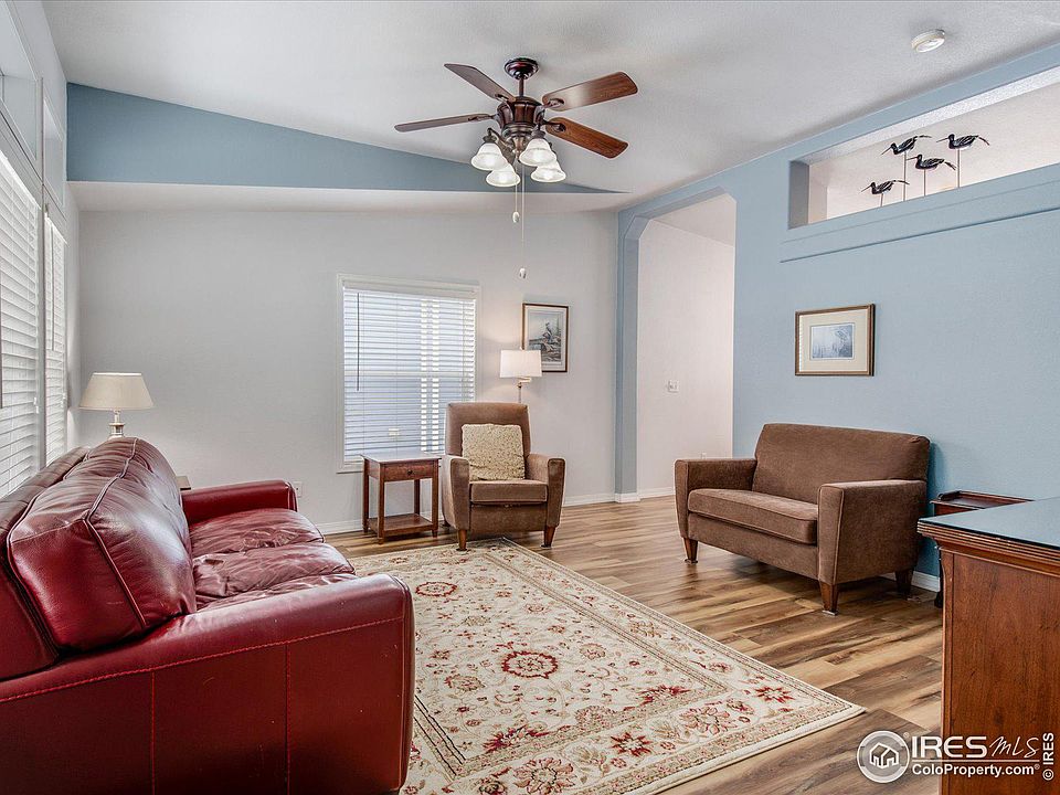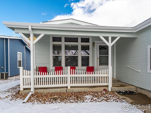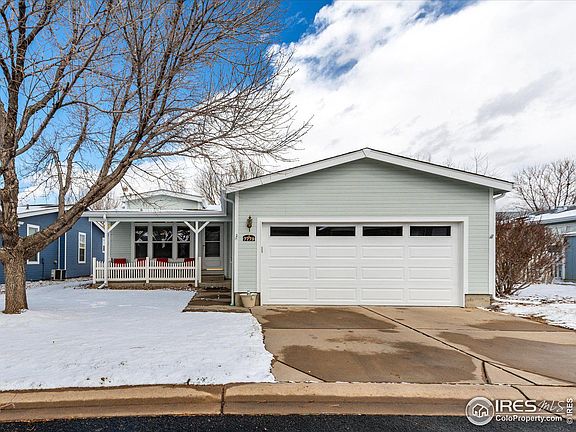 Unbelievable value with so many updates! Roof, gutters, exterior paint & garage door ALL REPLACED 2023. New furnace & ac in 2023. Washer & dryer new in 2022. MAJOR UPDATE to kitchen in 2021 (SS appl, quartz countertop, sink, faucet & laminate flooring). See complete feature list in Documents. Enter into the home from the covered front porch. The sunny living room faces south for great light! The eat-in kitchen provides a spacious space to entertain. Gain access to the large & fenced backyard from the kitchen slider. The primary bedroom is large and bright with a full bath with shower and dual vanity. Two additional bedrooms offer office space if you need it. The hall bath includes a shower/tub bathing area. A large oversize garage holds 2-cars with room for a workbench. Short walk to the Clubhouse/Fitness Center/Pool. Easy commute to I-25 or Hwy-85. Shopping, restaurants, coffee, and gas all within minutes of this great location. Prairie Greens is a land lease community. Buyer purchases structures and leases the land. The land lease currently has a monthly fee of $785 and includes lease of land, road maintenance, street snow removal, clubhouse, fitness center, outdoor pool, and playground/park (NO HOA FEE - just land lease fee).