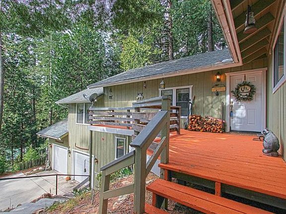 A contemporary home built up the hillside has 3 bedrooms, 3 baths with a large 2-car garage. Located Fish Camp, an historical, quaint Central Sierra Nevada town. North end of town is the southern gate to Yosemite National Park. South end of town is the picturesque 4-Star Tenaya Hotel. The interior feels like a mountain cabin but offers lots of space. The living room, dining and kitchen have knotty pine ceilings which enhances the floor-to-ceiling stone fireplace. The owners have enlarged and nicely maintained this comfortable home. Unlike many of the homes in the area, this one has year-round access, a paved driveway and a large 2 car garage. On a large lot, there is a small corral for horses with a separate driveway. In the event of a power loss, there is a 10,000 BTU generator professionally installed. And the snow blower stays with the house!