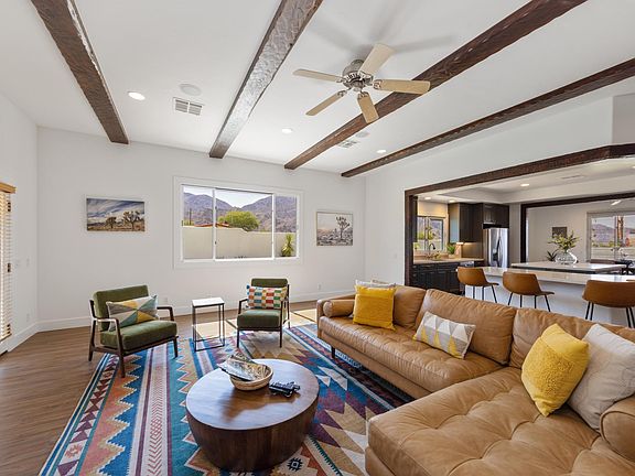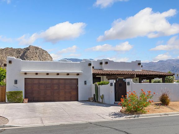 Fabulous single family home Santa Fe style with many many upgrades. Beautifully decorated bedrooms and 2 baths. Master bath is huge with double shower heads! Private pool on a double corner lot creating amazing privacy and peace! Located at the top of the cove and near the Bear Creek Trail. Completely custom built.. Cherry cabinetry with rollout shelves in the gourmet kitchen. Granite counter tops, Natural wood blinds throughout, custom Stamped-Stone Look Patios, decks, walks and driveway. Hot water circulating system and new water heater. Newer AC system(part is brand new)New pool equipment including variable Speed Pump. Laminate tile flooring throughout. La Quinta Cove is near Old Town La Quinta with lots of restaurants, shops, salons, The La Quinta Resort and Spa, Golf Courses. May 1st - Oct 31 $5000, Nov and Dec $7000. "Now Available Jan & Feb 2026