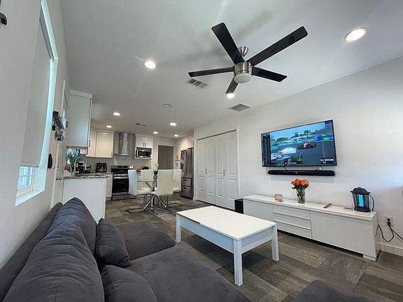 Don't miss this beautiful home with designer finishes and it's own patio area. Detached from main home with separate entrance for more privacy. Built in 2021. Freshly painted for incoming tenants to enjoy. New fridge washer and dryer. Granite countertops. Stainless steel appliances. Ceiling fans in every room. Central AC, heating and whole