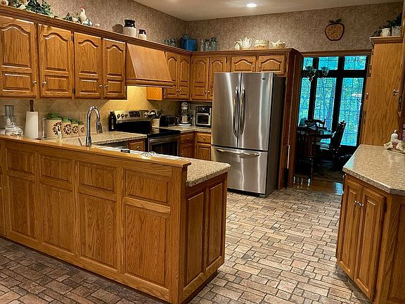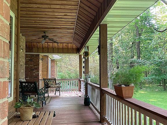 Three wooded acres provides the setting for this custom-built, all brick home with finished basement. Entry way with high ceiling leads to 3,500 sq.ft. With 5 bedrooms, 3.5 baths, 2 living areas, formal dining, large great room featuring a Cozy Heat fireplace. Custom woodwork and 6 panel doors throughout. Kitchen includes stainless appliances, custom cabinetry, breakfast area overlooking a covered deck and park-like setting. Master suite with walk-in closet, walk-in shower, double vanities, built in laundry hamper, garden tub and linen cabinet. Property also includes 40x40 outbuilding with extension for large RV. Wired 220, concrete floor.