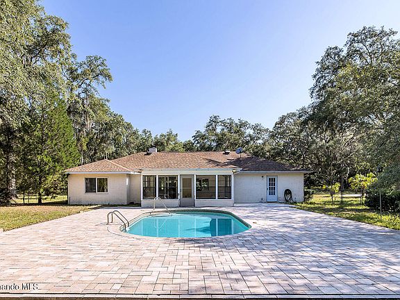 ACCEPTING BACK UP OFFERS. Welcome to your new private oasis of tranquility and peace! GREAT PRICE REDUCTION....PRICED WELL BELOW RECENT APPRAISAL VALUE!!!This custom-built POOL home boasts 2 bedrooms, 3 baths, and the potential to easily convert a space into a third bedroom on a stunning 10-acre property. Surrounded by lush, sprawling land that is fenced and cleared around the house, this is a true paradise for those seeking a serene retreat. The property also features a spacious 6-car garage/workshop with three garage doors and electric connections, perfect for car enthusiasts or those in need of ample storage space. Imagine hosting gatherings or simply relaxing by the beautiful inground pool, complete with a huge pavered deck that is ideal for entertaining guests. Step out onto the screened lanai and take in the picturesque views of the expansive backyard, gorgeous pool, and pool deck. The interior of the home is equally impressive, with new floors and fresh, neutral paint creating a welcoming ambiance. The cathedral ceilings and open floor plan in the kitchen, dining, and living room areas enhance the sense of space and airiness. Cozy up next to the custom stone fireplace on cool evenings, or prepare delicious meals in the well-appointed kitchen, which features a large island and a spacious pantry for all your storage needs. The large primary suite has an ensuite and just the right number of windows for viewing your little piece of paradise and an abundance of light. LOCATION!!!! This exceptional property offers the perfect blend of seclusion, modern conveniences, and comfort—truly a dream home for those in search of a private haven. Enjoy your private retreat while still being close to highways, shopping, dining, and everything that Brooksville and Hernando have to offer. Call and schedule a private viewing today as properties like this one do not come available often!
