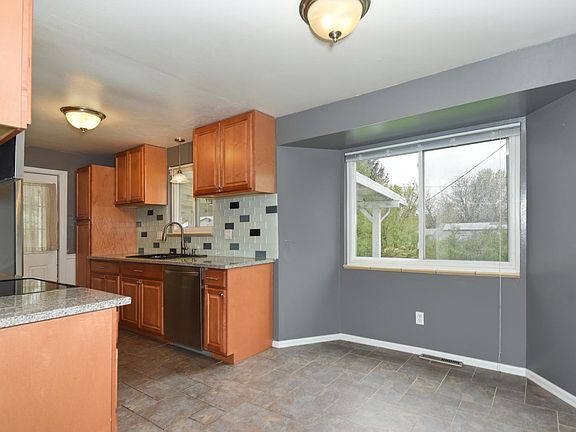 BACK ON MARKET after buyer financing fell days before closing and several attempts to extend! Come one, come all! Welcome home to your comfy and bright space only one block from a park! New water heater, Newer double pane Windows and roof! This home has an inviting living room, open kitchen that connects to the eating space and large living room with a bay window. New hardwood floors recently added throughout the upstairs. Both bathrooms have been fully updated with trendy tile within the past 6 months! The basement is finished, but can be further updated for your own taste. Lush big backyard with a covered patio, with an oversized shed and lots of grass. This space is great for entertaining. It's on a quiet street/area. The Location is Great for all buyers! New interior and exterior paint within the last year! Covered front porch for relaxing.