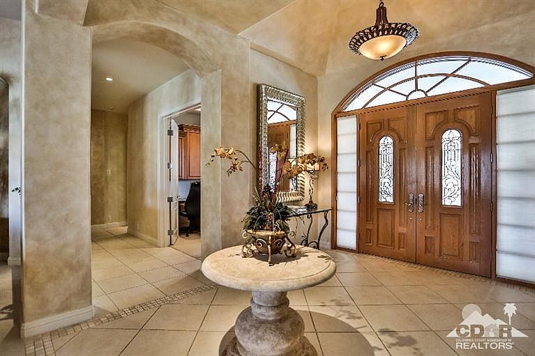 An impressive and exclusive estate in Palm Desert. Situated on a 1.22 acre lot, this custom 4bd/6bt, 6000 sq. ft. home is exquisitely built with posh detailing and finishes. Drive up to a 5-star hotel like entry complete with a circular driveway, a majestic portico and double doors. The formal entry with its grand arches, high ceilings and views of a glistening pool greets you and your family. The Great Room consists of sitting areas, bar/board/card game areas. An office is out rigged to conveniently work from home. The kitchen/den is a family's perfect retreat. Modern stainless steel appliances and granite counter tops are just a few kitchen niceties. The luxurious master suite with its spa-like bathroom boasts fine finishes. Alternate bedrooms are spacious and comfortable. The outdoor entertaining area with its pristine landscaping is accented with a elegant terrace, pool, water slide, outdoor cooking area and bar. This home includes an RV/6 car garage with an office and casita.