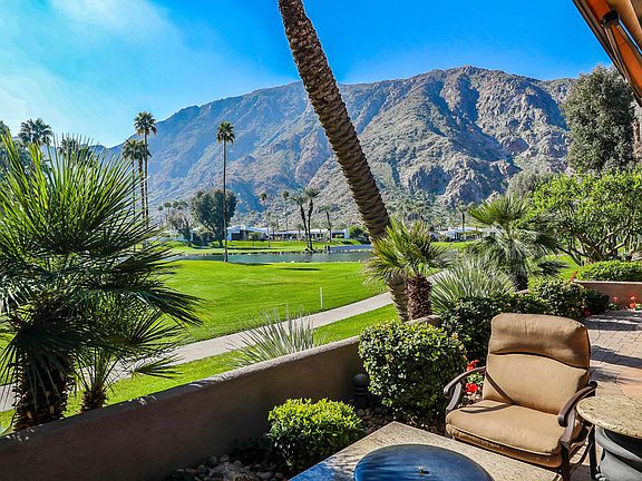 Captivating Golf, Mountain, and Lake Views with outstanding location, 2580 Sq. Ft., 3 very spacious carpeted Bedrooms, 3 ensuite Baths, and designer furnished Condo on the 16th Fairway at Indian Wells Country Club Cove course! Very well maintained, with lots of upgrades, light and bright, and astonishing views from the Open Great Room, formal Dining Room, and Primary Bedroom. Breathtaking views from large, covered, and tiled Lanai showcases the best in indoor/outdoor Living complete with gas grill, firepit, fountain, and beautiful, custom low maintenance landscaping and custom exterior lighting. Coveted oversized 2 cars plus golf cart garage, epoxy floors, and numerous built-in high custom cabinets. The large, tastefully landscaped and tiled central atrium includes a lovely fountain and such a great space for entertainment. Great Room with views, high ceilings, and lovely granite gas fireplace. Gourmet Kitchen with stainless appliances and granite countertops. The Primary Bedroom has awesome mountain and fairway views, plus glass sliders open out to Lanai. Primary Bath features walk-in closet, dual sinks, stone floors and countertops, and large shower. Guest Bedrooms have walk in closets and large ensuite Baths with showers, and glass sliders open to private atrium. Within this HOA community are 3 sparkling pools and spas well maintained and close by! A rare gem not to be missed!