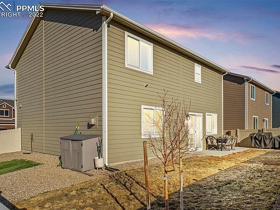 Beautiful open floor plan home on a corner lot with an eat-in kitchen, bar area and a spacious living room, boasting a gas fireplace. The dining area walks out into the backyard which has an extended patio. The kitchen has stainless steel appliances, gas stove and a large pantry. The upper level includes a large master suite, with custom barn door that leads to the 5 piece bath and a large walk-in closet. Also on the upper level are two other bedrooms that both connect to the jack and jill bathroom. The spacious upper level laundry room is conveniently located near bedrooms. Tons of natural light in the master bedroom/bathroom. The backyard is fenced in with beautiful vinyl fencing for privacy. There is an automatic sprinkler system both in the front and backyards for easy watering. This neighborhood features a community center with a workout facility, outdoor pool/hot tub and a space that can be rented for gatherings, along with a playground and neighborhood walking trails. Ventana is located close to shopping, dining, access to I-25 and Fort Carson.