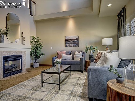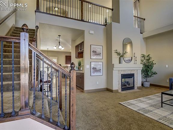 This stunning 2 story home is located in Forest Meadows across the street from a neighborhood park! As soon as you enter this home, you'll be greeted with a large living room with high ceilings and a double sided fireplace that adds an amazing ambiance - perfect for relaxing or entertaining friends. There's also a separate dining room with its own sink for an added convenience. The gourmet eat-in kitchen has top of the line stainless steel appliances including a gas range, Corian countertops, and gorgeous cabinets and soapstone backsplash that will make any chef feel inspired. As you walk up to the upper level, you’ll find a large open concept loft that’s perfect for an office or another entertaining space. All four bedrooms are spacious and inviting, but the owner's suite is something special! It includes an incredible 5 piece bathroom and an expansive walk-in closet—but what will truly take your breath away is the private balcony that boasts breathtaking mountain views. Enjoy your morning coffee while taking in nature’s beauty or curl up with a good book in the evening as you watch the sunset over the mountainside. Come downstairs to the finished basement that includes another large bedroom, a full bathroom, and a huge family room with plenty of space for a gaming area or work out station! Some of the additional features include plantation shutters, built in speakers, a large rear covered patio, a finished garage with one of the bays currently used as a heated work space, easy access to the Powers Corridor that boasts tons of shopping, restaurants and entertainment! With this amazing home, there's something for everyone to love!
