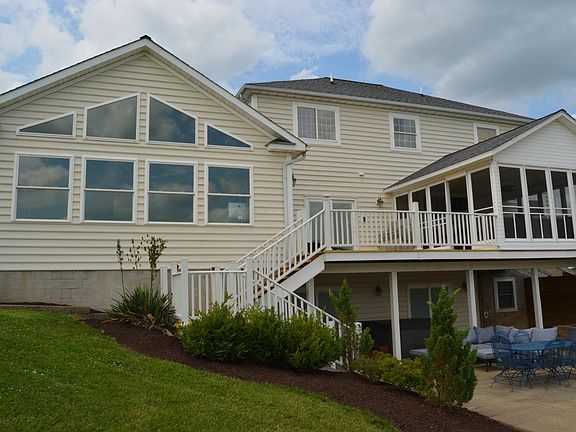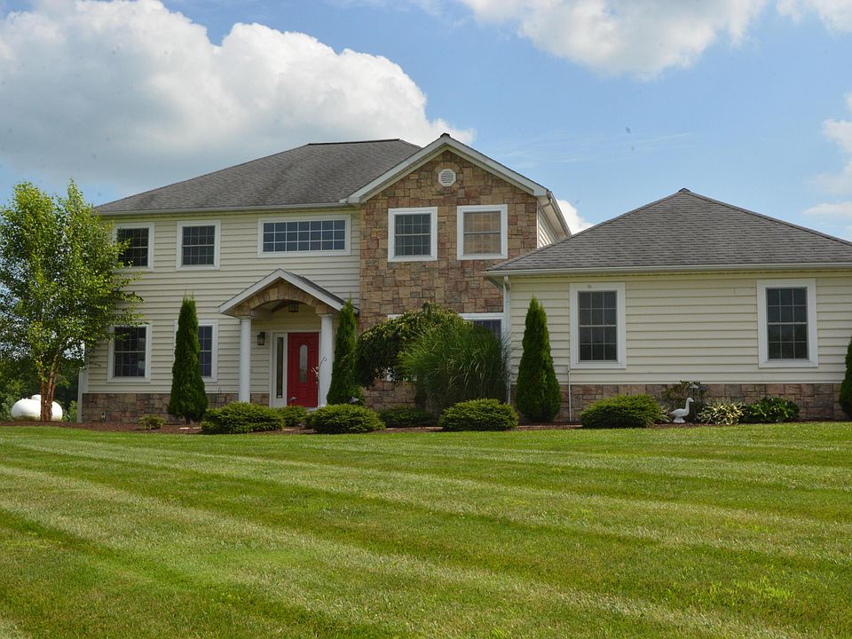 This stunning 5946 sqft home is located on over 15 acres of land and offers the perfect blend of privacy and luxury. The home features a spacious floor plan with 4-6 bedrooms, 3.5 bathrooms, a 3 car attached garage, a pool, large pole barn and a stocked pond. The main level features a large living room great views and a fireplace, a gourmet kitchen with stainless steel appliances, and large island. The upper level has 4 bedrooms, including the owner suite with, a walk-in closet, and a spa-like bathroom. The lower level has a family room, a game room, and a theatre room. The backyard is beautifully landscaped and features a patio, a fire pit, large pool and a pond. The swim pond has a zip line running over it. Great times for the summer.