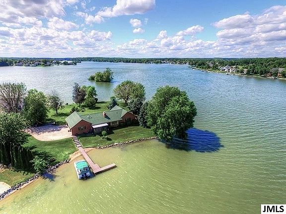 3B/R, 3Bath Lakefront Home on a private, all-sports lake. This brick, ranch-style home has a peninsular location with nearly 400 ft of lakefront, so you can enjoy panoramic lake views including sunrises and sunsets from nearly every room. Fireplace and 3-season sunroom. The beautifully maintained yard & gardens include mature trees.