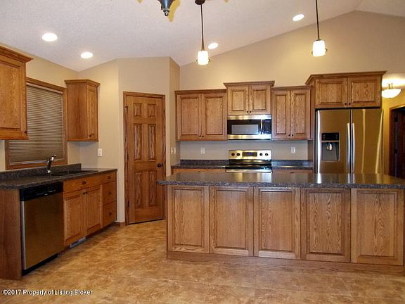 Quality split foyer home built by Majestic Homes. Like new condition. Large foyer. Great room style with cathedral ceilings, custom oak kitchen cabinets with large center island and corner pantry. Nice master bedroom suite with bath and huge walk-in closet. Main floor laundry. Six panel oak doors and trim. Back yard is white vinyl fenced, underground sprinkler system, beautiful yard. Garage is finished, heated with floor drain. REALTOR OWNED.