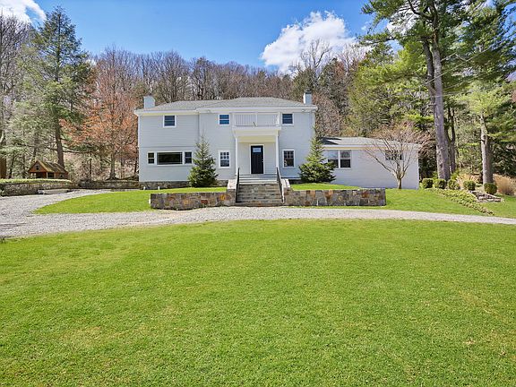 Old world charm permeates this recently renovated 3500 SF home with quality construction and modern interior features. This Lovely 4 bedroom brick Colonial is set on a level 2.4 acres set back from the road. Private setting with circular driveway surrounded by lush greenery. This sun-filled home offers an open flow perfect for entertaining and everyday living, refinished hardwood floors throughout and two fireplaces. The first floor includes updated kitchen with brand new appliances, butlers pantry and laundry room, breakfast room with views of the beautiful property, large family room, dining room open to the living room and first floor bedroom with en suite bath. The second floor includes large master suite with large walk-in closet, 2 additional closets and updated master bath with double vanity, shower, room for a tub, 2 additional bedrooms each with walk-in closets and en suite baths. House painted inside and out. Plans for 2-car garage and mudroom come with the house. 5 bedroom septic system. 45 minutes to NYC.