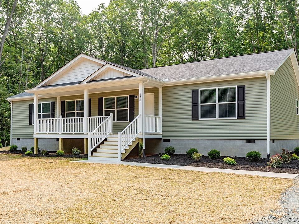 NEW!!! COMPLETE. 1,800 sq.ft. 3 Bed 2 bath home sitting on 4.2 acres. Home is nestled directly only 30 miles from. Home features a large 26' reverse A front porch, granite tops, open floor plan with TONS of natural light! Open kitchen floor plan, pantry, recessed lighting, HUGE living room. Large master bathroom and good size guest bedrooms! Beautiful landscaping across the front, large rear deck. Interior photos of similar model.