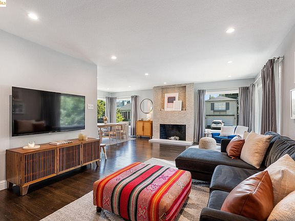 This creekside, light-filled, 3/2 Mid-century home is nestled in the coveted Estudillo Estates neighborhood where many desire to live, but few have the opportunity. This stylish home has been lovingly maintained and is ready for its new owner. A nicely landscaped exterior greets you. Come in to find an open concept modern interior w/ beautiful dark hewn hardwood floors. An inviting living room beckons you to cozy up by the dramatic tiled fireplace. The dining room can accommodate large gatherings. The open, updated kitchen will make preparing meals a joy. You will feel you have gone to the spa when you shower in one of the updated bathrooms. In addition, this home has air conditioning so you will feel comfortable despite the heat. There is a bonus room next to the garage which is currently used as an exercise studio. BART, highways, buses, restaurants, shops, a library, the post office, cafés & Lake Chabot are nearby. The perfect bucolic setting awaits!