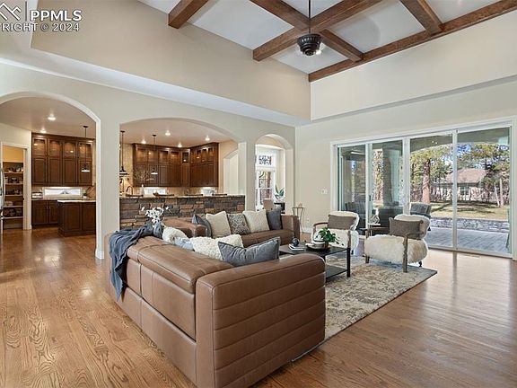 - 9Ft + Ceilings, Beamed Ceilings, Crown Molding, Great Room, Breakfast Bar, Dry Bar, Pantry