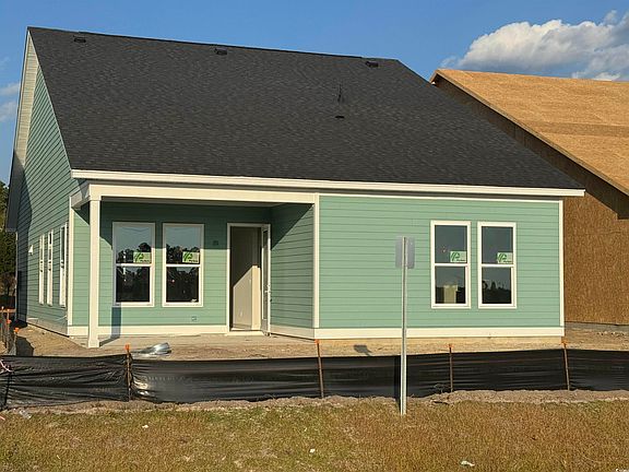 The Aspen artfully balances high-end design with everyday livability in this ranch-style retreat. From the welcoming front porch, the cozy foyer is flanked by a versatile flex space that can transform into a private study. The heart of the home showcases a contemporary kitchen with a center island, flowing into the breakfast area and expansive family room. Outdoor living spaces grace both front and back, with a charming, covered porch and expansive covered patio – perfect for savoring morning coffee or evening cocktails while enjoying the coastal breeze. A luxurious primary suite includes a spacious walk-in closet and private bath, while two additional bedrooms share a full bath. A two-car garage offers plenty of space for storage, parked vehicles, and more. Photos are of a similar home.