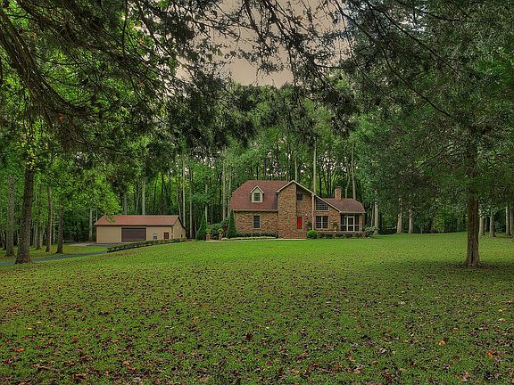 Custom built brick home just outside the city limits with 6 acres. Beautiful setting. Home has a side screened in porch, deck on the back, 30x50 heated shop w/bathroom, Rec room with full bath and fireplace in basement, Great room has fireplace/hardwood floors, combination dining room, lots of extra cabinets.
