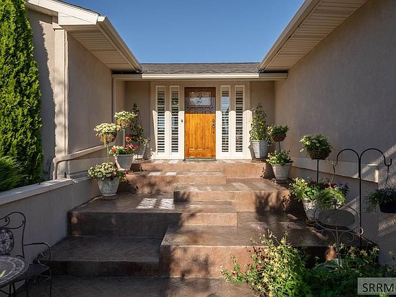 Gorgeous new listing in Menan on 5+ acres of peace and solitude! Your new home is situated in a park like setting of stunning landscaping, mature trees, and a serene water feature. Upon entering from the custom stamped concrete courtyard you are greeted with large open floor plan, featuring a spacious common area perfect for entertaining. The dining area flows to the back deck, offering an amazing space to relax and unwind while the kids play in the fenced yard. Your kitchen has been updated with rich custom dark stained alder cabinetry, granite counters, and a white subway tile backsplash. The main floor family room offers abundant windows allowing in plenty of natural light, as well as stunning views of the landscaping and distant mountains. On the main level you will also find 3 bedrooms, and 2 bathrooms, including a master bedroom featuring a private 3/4 bathroom. The basement is fully finished and provides you with a bright family room with tray ceiling and french doors leading to the backyard. There are also 3 additional bedrooms and a full bathroom downstairs, as well as a large storage room. The large 2 car attached garage, and storage shed offer plenty of space for vehicles/toys, and you have 5.49 acres of irrigated ground for animals or just extra elbow room!