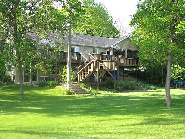 Attractive Silver Lake front home with 210 feet of lake frontage. More than a 3/4 acre wooded lot. Large deck that covers a large patio that will give you and your guests a view of Silver Lake. Remodeled Kitchen with hard surfaced counter tops. 2 1/2 baths. 3 bedrooms. New Roof with lifetime transferable warranty. New Gutters, House painted within the past 2 years. Porch windows and doors replaced within the past 2-4 years. A must see.