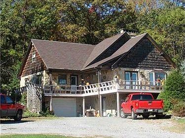 Unique stone and cedar home built by the owner who was one of Butler County's premier builders for years, tremendous stone work, oak trim, plaster walls, spectacular curvedstaircase, heated kitchen floor, third bedroom to be completed.